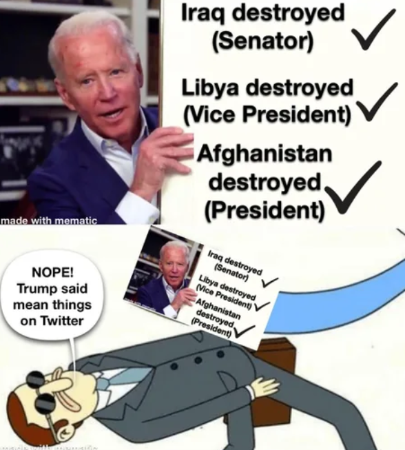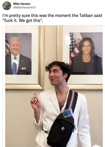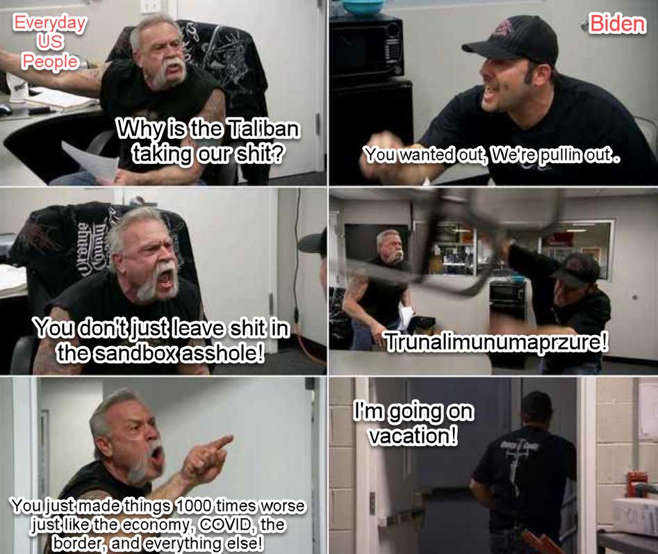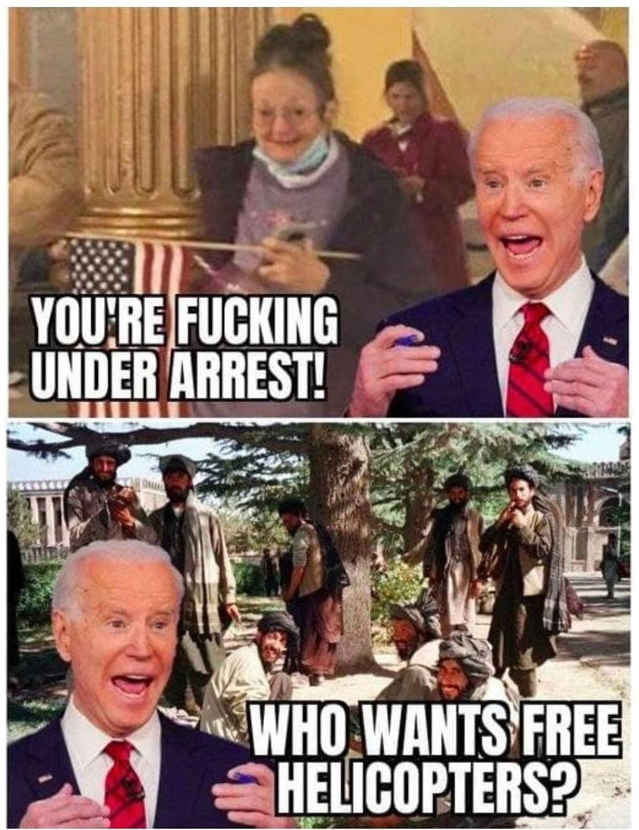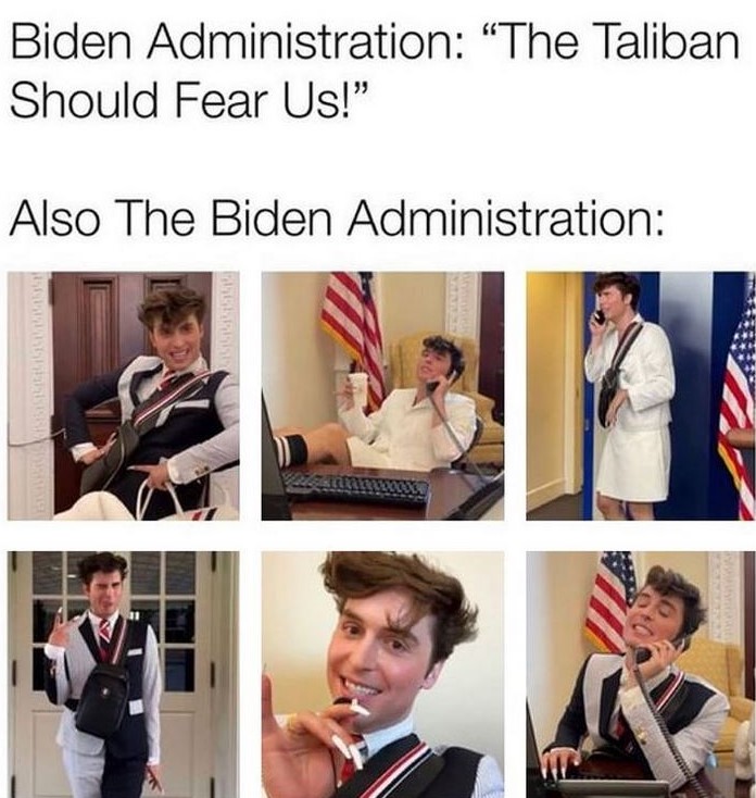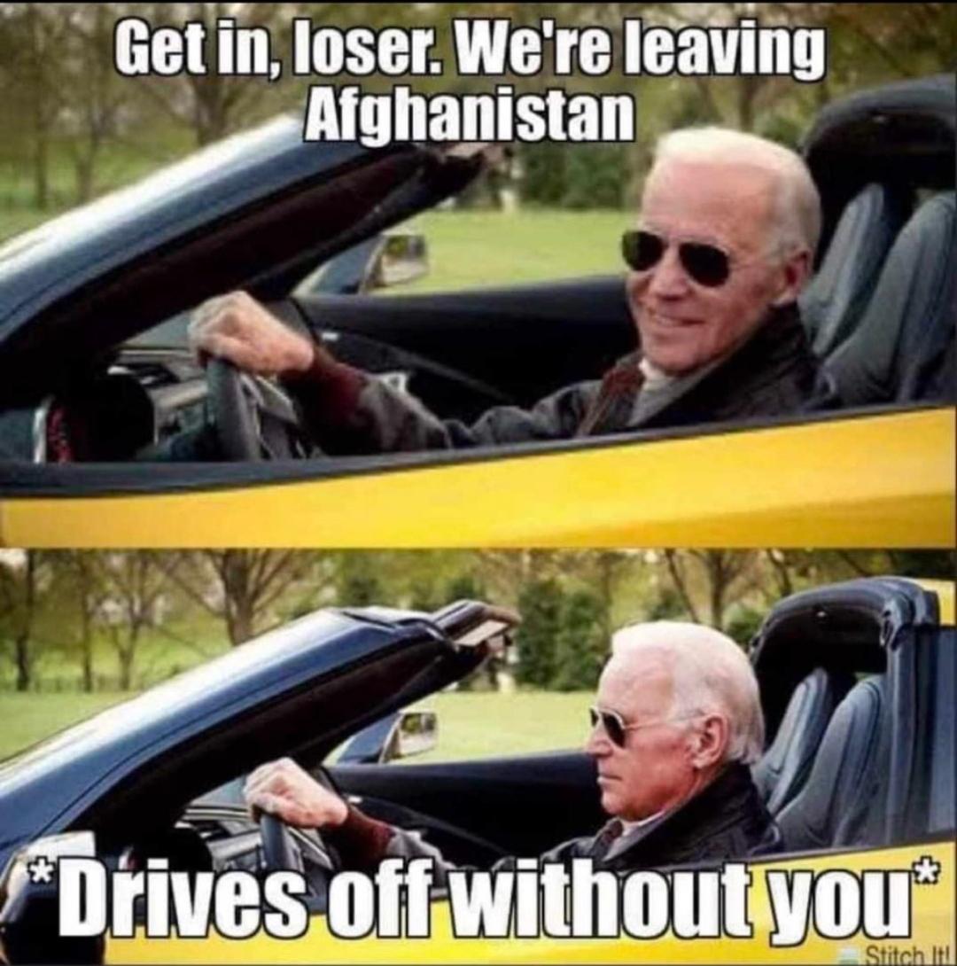 Biden Afghanistan Meme Gallery Older Newer Post category:Army / Biden / Galleries Post published:August 17, 2021 Tags: afghanistan You Might Also Like we know how it feels September 30, 2022 set your pfizers January 21, 2023 outsmarted September 1, 2021 Doocy strikes again June 26, 2022 don’t worry, man January 19, 2023 that’s California April 11, 2022 oh please no June 23, 2021 fore pt. 2 June 14, 2023 live look inside the Oval Office June 8, 2023