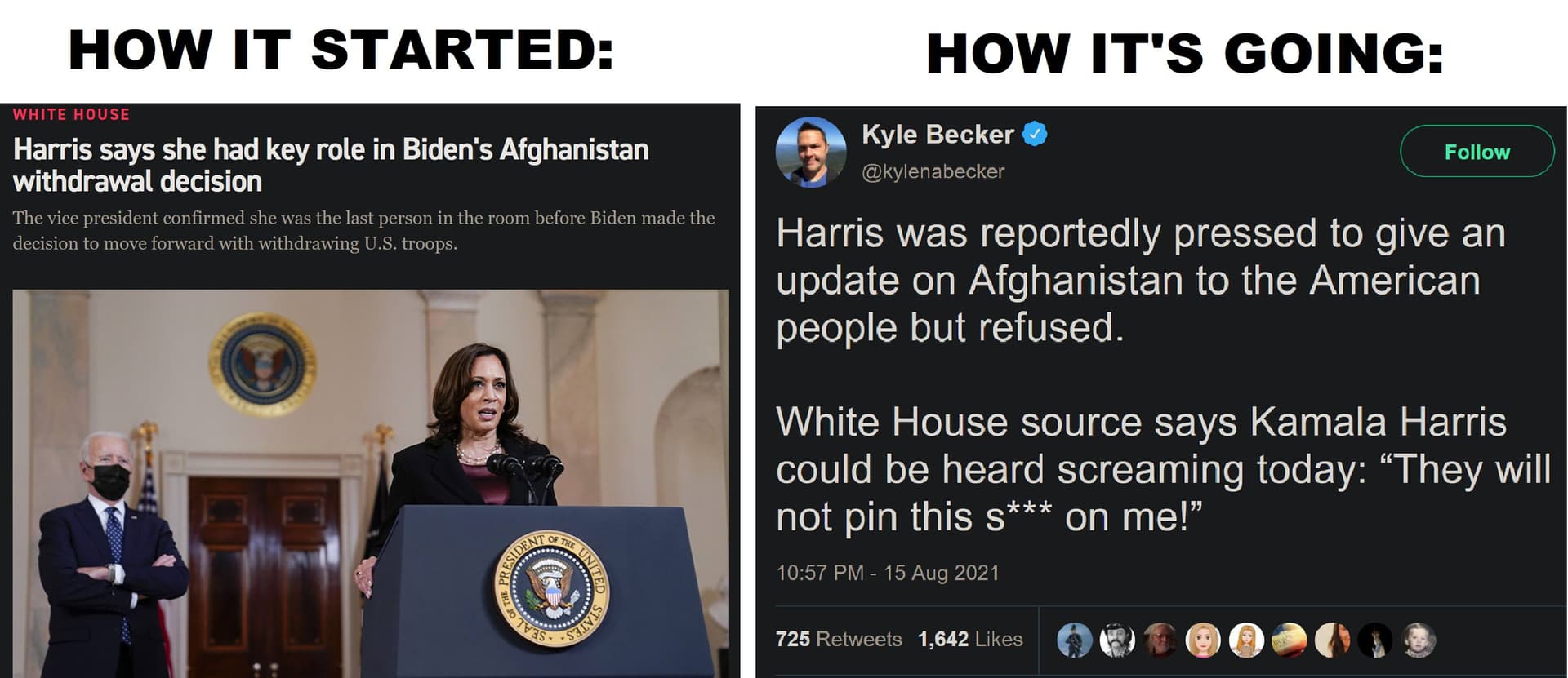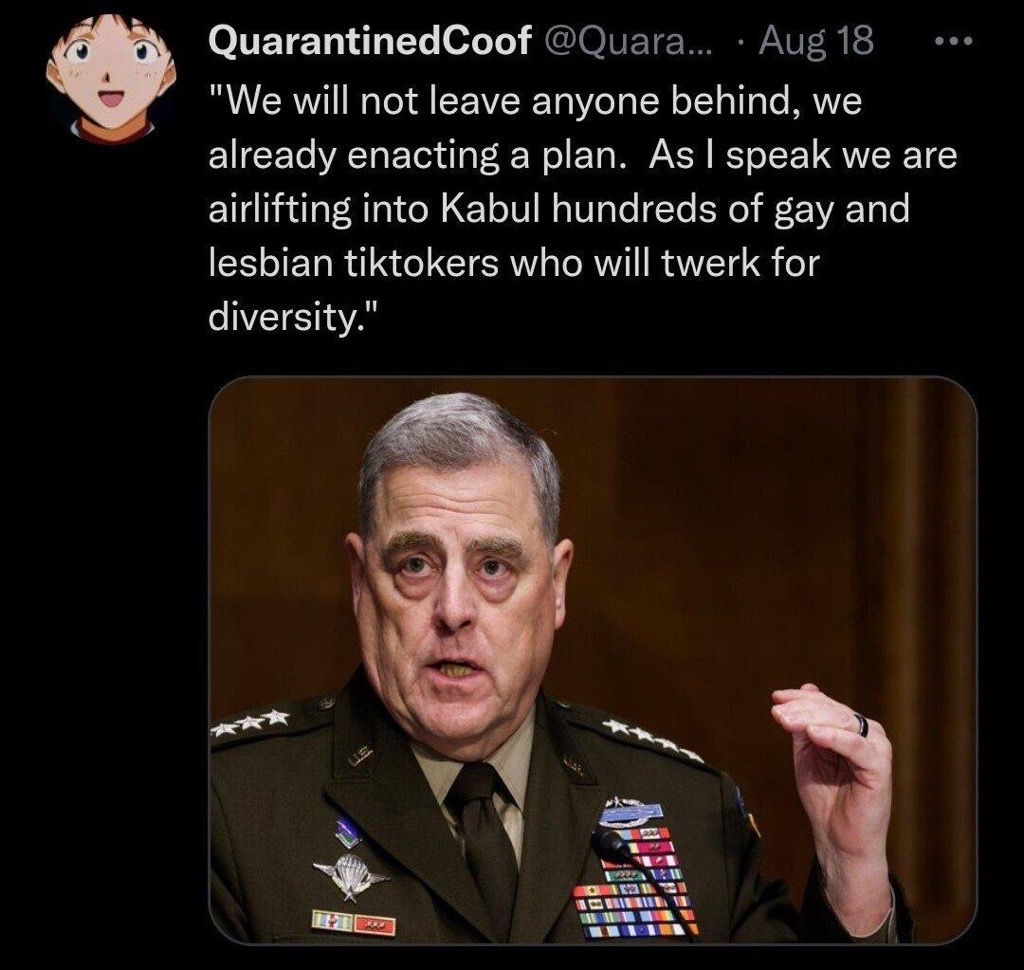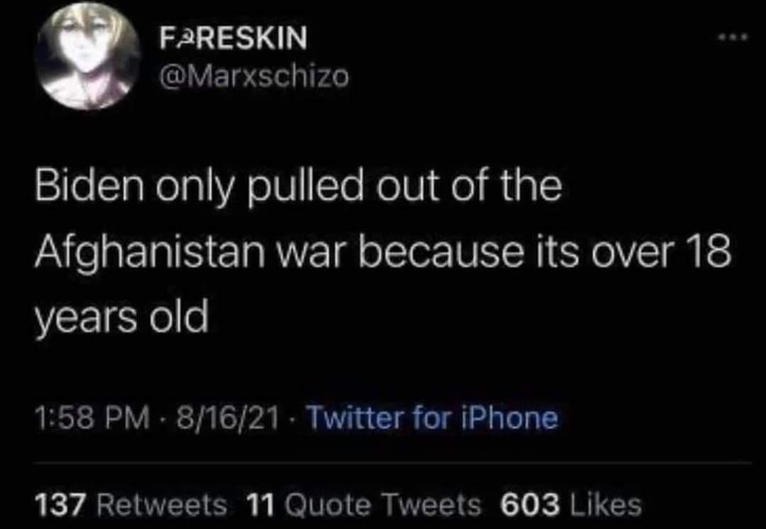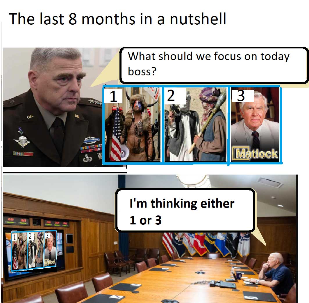Biden Afghanistan Meme Gallery Older Newer Post category:Army / Biden / Galleries Post published:August 17, 2021 Tags: afghanistan You Might Also Like we know how it feels September 30, 2022 set your pfizers January 21, 2023 outsmarted September 1, 2021 Doocy strikes again June 26, 2022 don’t worry, man January 19, 2023 that’s California April 11, 2022 oh please no June 23, 2021 fore pt. 2 June 14, 2023 live look inside the Oval Office June 8, 2023