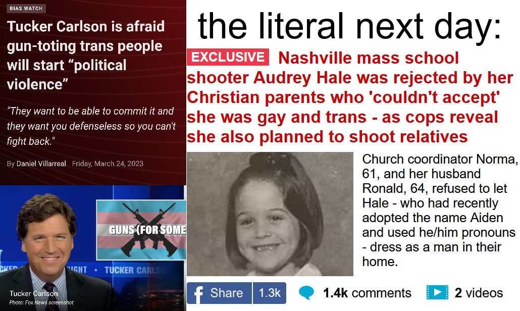 Nashville Shooting Audrey Hale Meme Gallery Older Newer Post category:Galleries / LGBTQ+ Pride Post published:March 29, 2023 Tags: audrey hale, nashville You Might Also Like anything but left alone May 8, 2023 now out of reach July 25, 2023 Captain Kidd July 28, 2022 never touch pickles July 7, 2022 heavily decorated March 30, 2022 celebrate trans bodies October 9, 2022 based boomer meme November 3, 2021 destroyed from within March 1, 2023 enjoy, ladies! May 12, 2023
