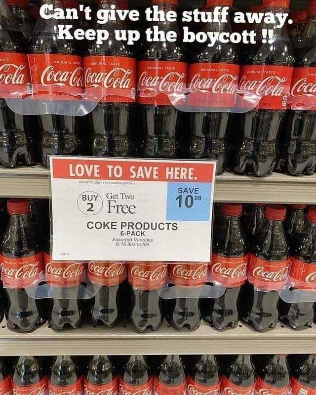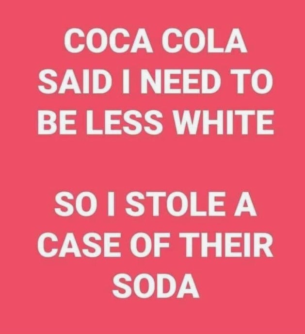 Coca Cola Meme Gallery Older Newer Post category:Corporate Marxism / Galleries Post published:March 29, 2021 Tags: coca cola You Might Also Like Biden Gas Prices Meme Gallery May 25, 2021 disqualified February 2, 2022 McCloskeys Meme Gallery July 6, 2020 Delta Airlines hates you January 16, 2024 share a coke February 21, 2021 pride, but not everywhere June 7, 2021 this Bud’s for anyone but me June 27, 2023 Bud Light is gay now April 3, 2023 Bed Bath & Bankrupt January 12, 2023